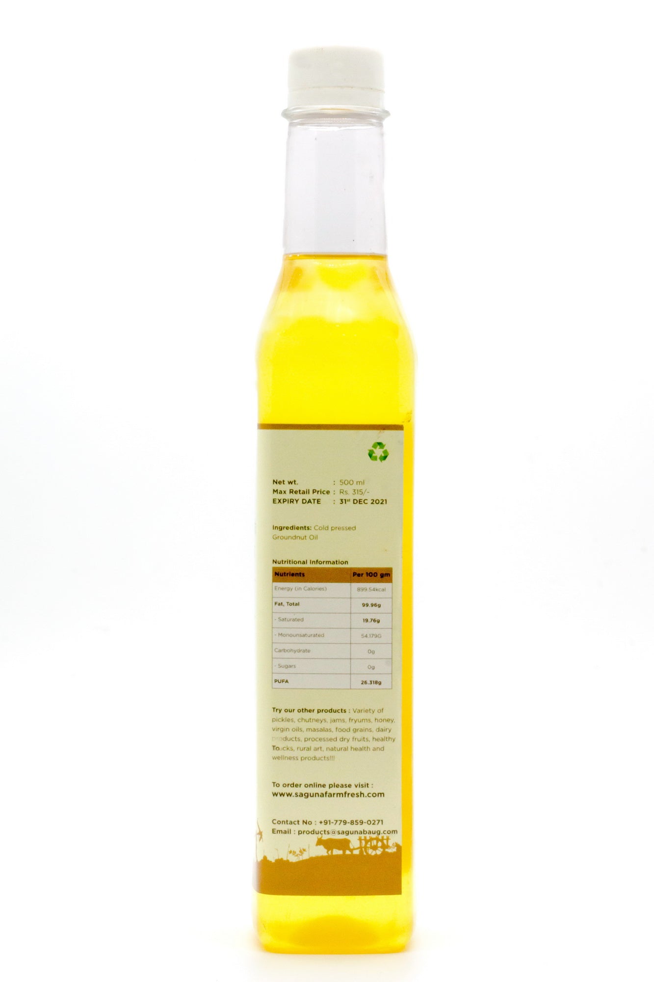 Cold Pressed Groundnut Oil (लाकडी घाण्याचे शेंगदाणा तेल) – 500ml