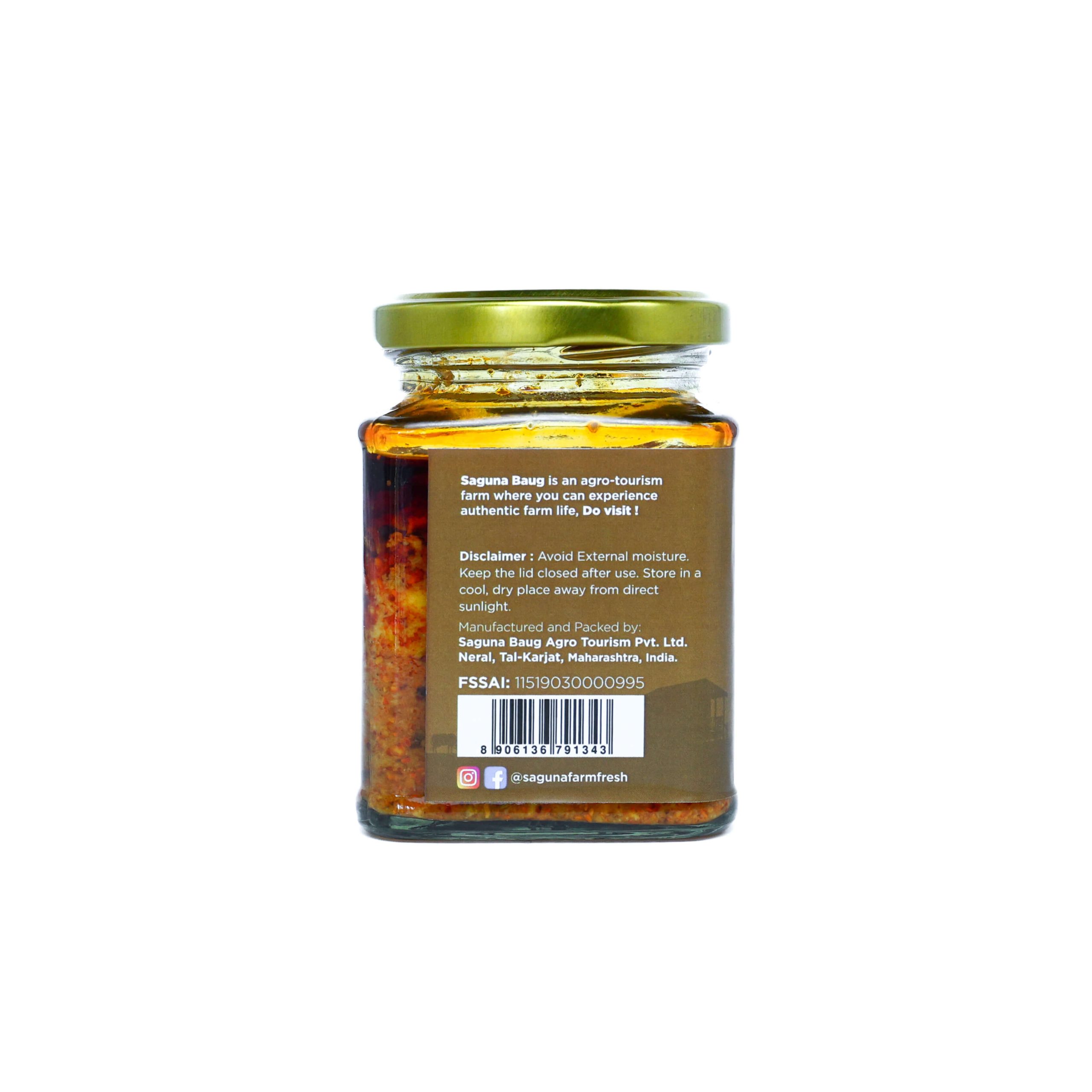 FARM-FRESH INGREDIENTS: Our 55 Acre Farm comes in handy where by we deliver fresh Raw mangoes to concoct a homely and healthy Kairi ka Achar or Pickle with a blend of spices.